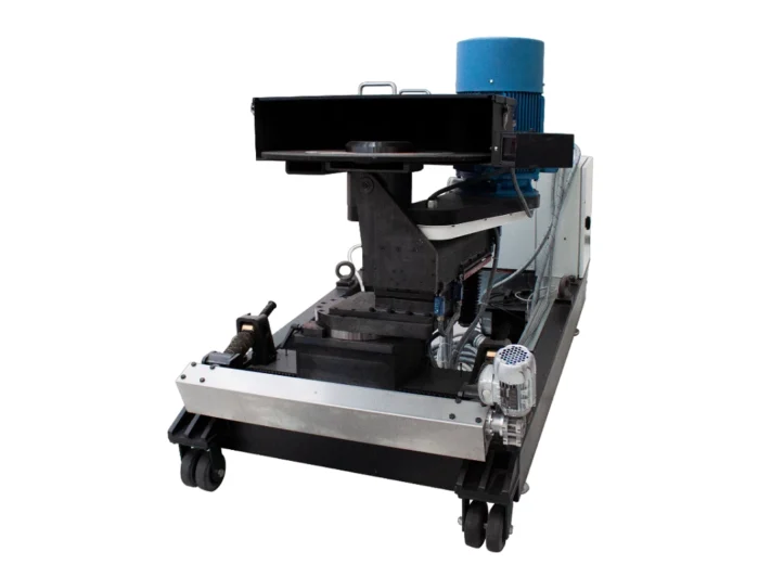 Головка станка может быть установлена на тележке, а также на манипуляторе и оснащена шлифовальным диском 800 мм, легко заменяемым с комплектом для натяжки ленты. Кроме того, головка станка может наклоняться на 90° для обратной зачистки продольных швов без необходимости использования колонной стрелы.