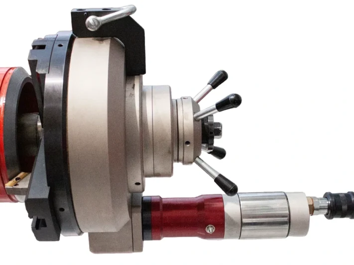 Портативный (переносной) станок для снятия фаски с труб Supermaxi 4_16 от G.B.C. Industrial Tools предназначен для трубопроводной промышленности и сварочных цехов, занимающихся обработкой трубопроводов, котлов и фитингов. Он оснащен 6-точечной системой фиксации, обеспечивающей стабильность и отсутствие вибраций во время работы. Кроме того, установка и центрирование чрезвычайно просты, точны и функциональны. Благодаря инновационной конструкции оправки, станок позволяет использовать как стандартные цельнокорпусные инструменты, так и клиновые фиксирующие инструменты со сменными вставками. Конструкция станка разработана таким образом, чтобы стружка от предыдущего прохода не влияла на последующие. С помощью дополнительного комплекта расширения диапазон обработки может быть расширен до 16,45” (418 мм) внешнего диаметра. Станок доступен в пневматическом, гидравлическом, электрическом и бесщеточном исполнении.