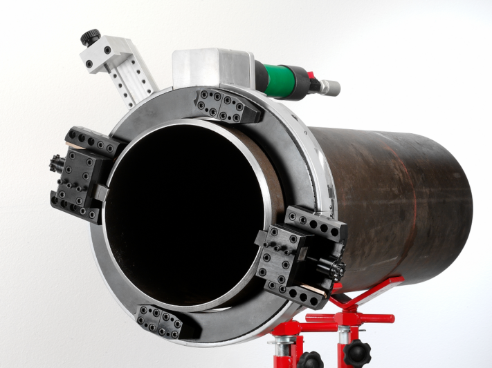 Станок для резки труб (разъемный труборез) MCA CUTTER от G.B.C. Industrial Tools идеально подходит для холодной резки и снятия фаски с труб большого диаметра как в цеховых условиях, так и на объектах на открытом воздухе, например при строительстве и обслуживании трубопроводов. Он имеет разборный алюминиевый корпус для облегчения установки в труднодоступных местах. Легкость и уменьшенные габариты алюминиевого разъемного кольца корпуса обеспечивают удобство позиционирования и использования одним оператором.