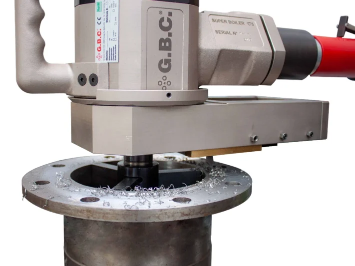 Станок для обработки фланцев Superboiler T5 Flange идеально подходит для операций по восстановлению канавок для уплотнительной поверхности прокладок на небольших фланцах, поврежденных или нуждающихся в ремонте.