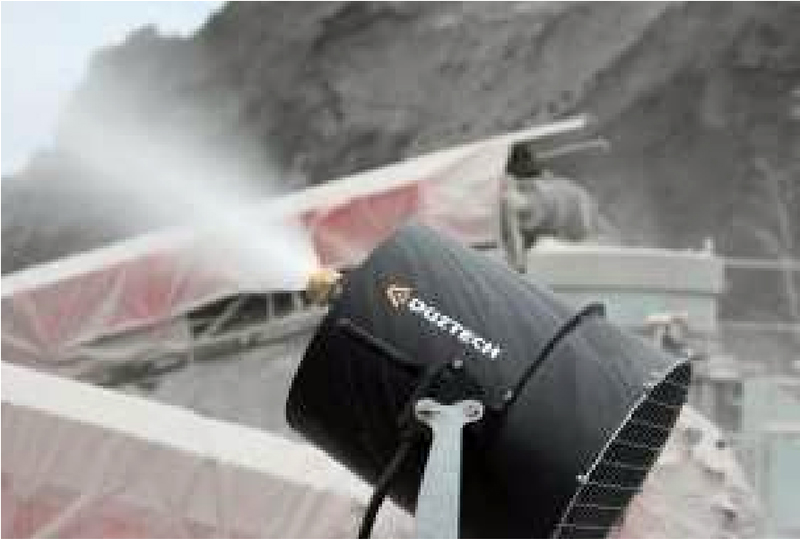Туманоутворююча гармата для придушення пилу Duztech X35 – це компактна та енергоефективна водорозпилююча установка з дальністю дії 25-35 метрів, яка використовується для контролю пилу, запахів та забруднення повітря у різних галузях застосування. Оснащена міцною рамою, вона розрахована на тривалий термін служби та може бути мобільною або стаціонарною установкою. Вирізняється низьким енергоспоживанням. Автоматичне обертання до 360° для розподілу водяного туману на великих площах також є стандартною функцією. X35 підключається до стандартної розетки 16 А. Живлення може здійснюватися від трифазної мережі 400 В/50 Гц.